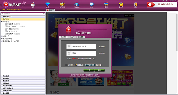 一、打開聯(lián)眾大廳,新用戶選擇立即注冊(cè),注冊(cè)一個(gè)帳號(hào),老用戶直接輸入帳號(hào)和密碼進(jìn)入游戲大廳。