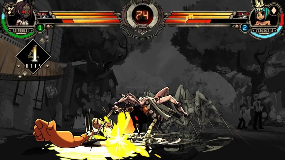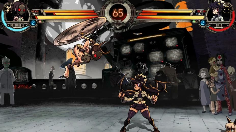 骷髏女孩(Skullgirls)是一款2D風格化街機卡通手繪動作格斗游戲,玩家將在一個非凡的黑暗裝飾世界中控制兇猛的戰(zhàn)士,14個原始角色都有獨特的游戲機制和豐富的個性。