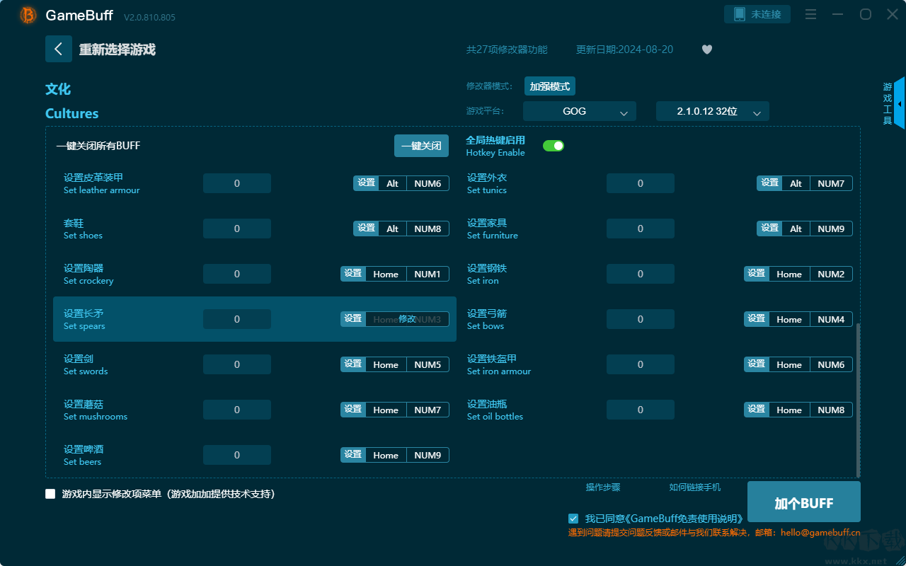 文化二十七項(xiàng)修改器使用說明