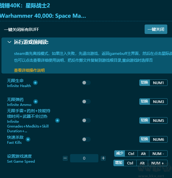 戰(zhàn)錘40K:星際戰(zhàn)士2八項(xiàng)修改器鍵位功能