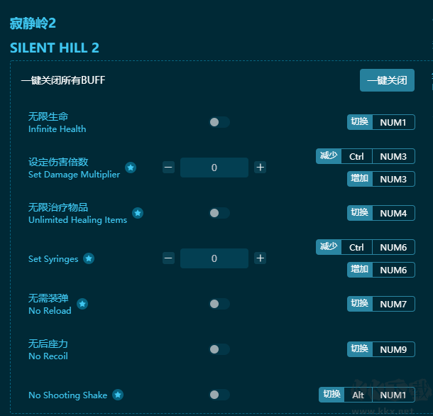 ???????寂靜嶺2重制版十七項修改器鍵位功能
