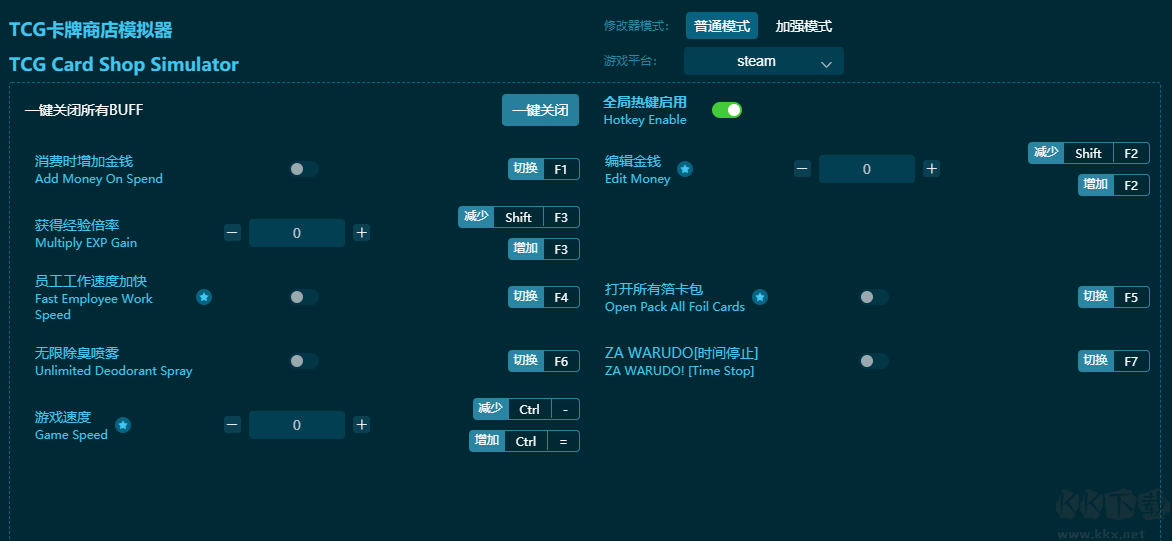 TCG卡牌商店模擬器三十五項(xiàng)修改器鍵位功能