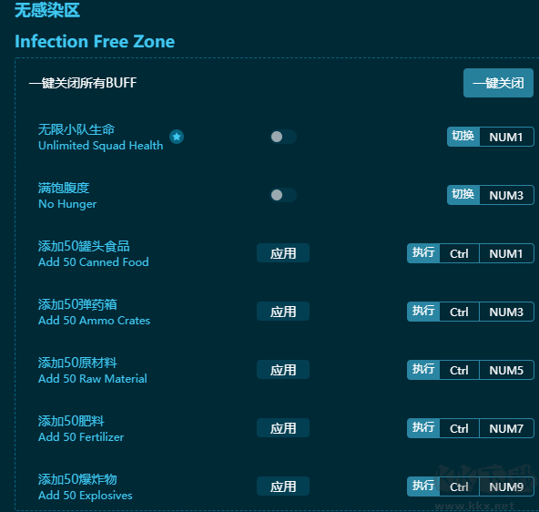 無(wú)感染區(qū)七項(xiàng)修改器鍵位功能