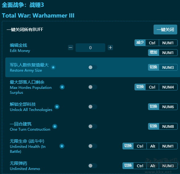全面戰(zhàn)爭(zhēng):戰(zhàn)錘3三十五項(xiàng)修改器?鍵位功能