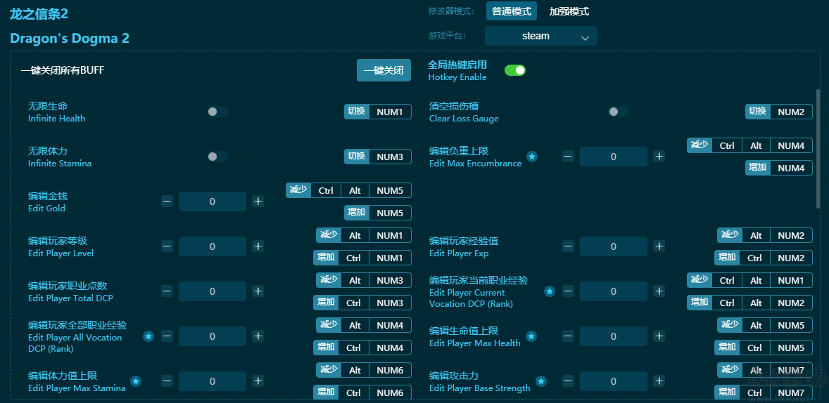 龍之信條2三十八項(xiàng)修改器鍵位功能