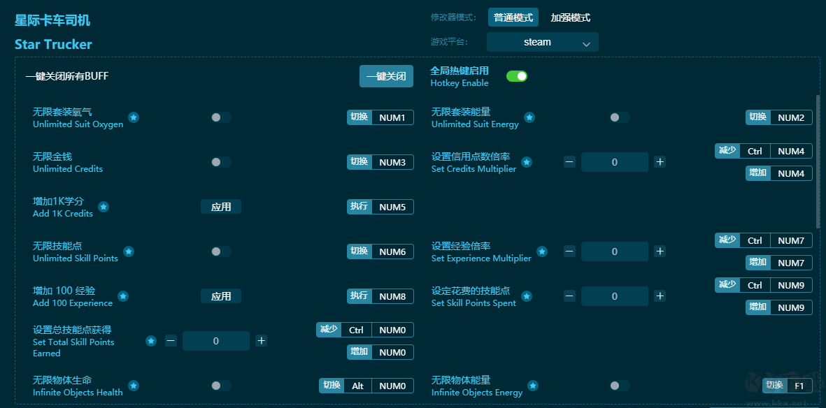 星際卡車司機(jī)四項(xiàng)修改器功能