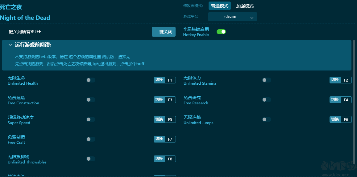 死亡之夜十二項(xiàng)修改器是一款非常棒的游戲內(nèi)置菜單,專門為冒險生存游戲《死亡之夜》制作的十二項(xiàng)專屬功能,可以幫助玩家在末日更好的生存下來,收集更多的武器和物資打造最完美的末日逃生檔案,心動的玩家趕緊下載體驗(yàn)起來吧!