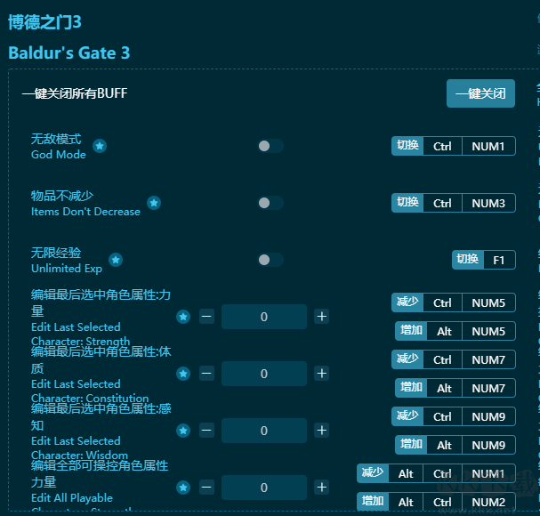博德之門3二十八項修改器是一款非常棒的游戲內(nèi)置菜單,玩家先開啟游戲再打開游戲輔助就能獲得改變游戲基本屬性的能力,無限金幣、無限生命、游戲兩倍速等功能玩家都可以在這里免費享受,需要的朋友趕緊下載試試吧!