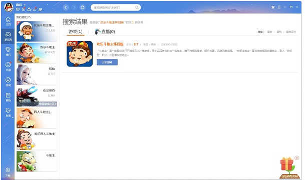 一、打開(kāi)QQ游戲客戶端,登錄賬號(hào),進(jìn)入游戲大廳,在左側(cè)的游戲列表中選擇一個(gè)游戲,也可直接在搜索框中搜索游戲,