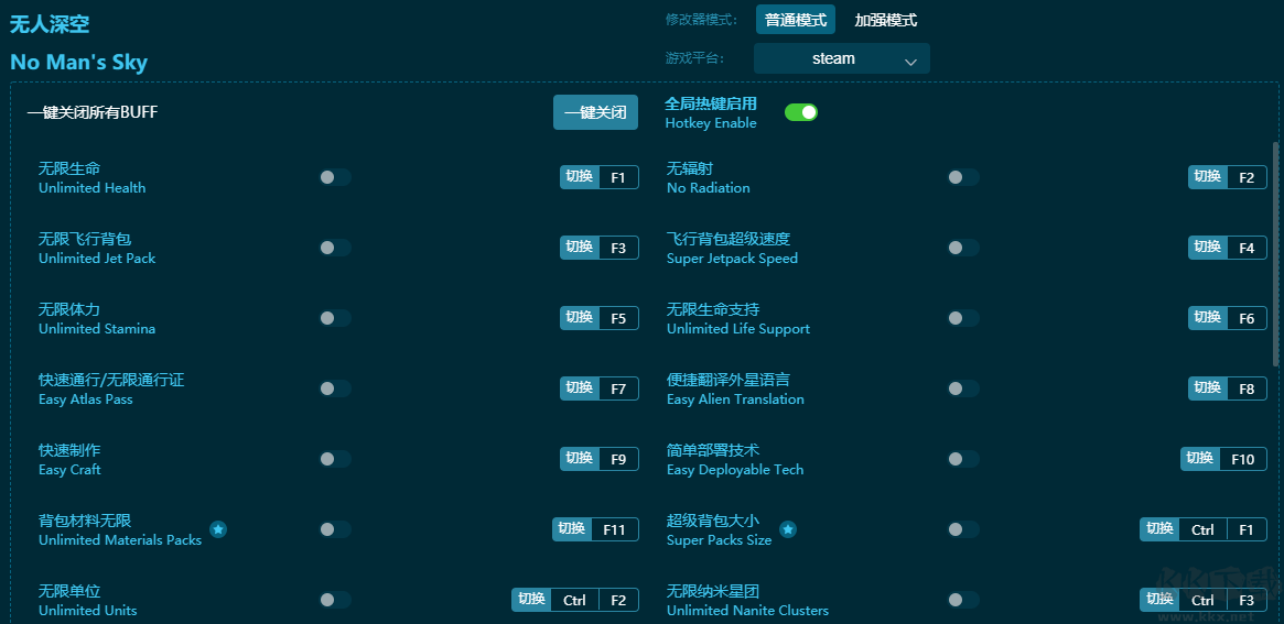 無人深空四十項(xiàng)修改器是一款非常棒的游戲輔助工具,四十項(xiàng)強(qiáng)大的輔助功能可以幫助玩家快速獲得需要的物品,提高游戲角色的屬性,讓每一位玩家擁有全新的游戲體驗(yàn),大大節(jié)省了游戲的開荒時(shí)間,運(yùn)行環(huán)境流暢,心動(dòng)的玩家趕緊下載試試吧!