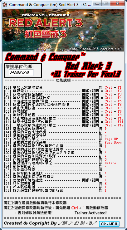 以上便是kk下載小編為大家分享介紹的紅色警戒3三十一項(xiàng)修改器!