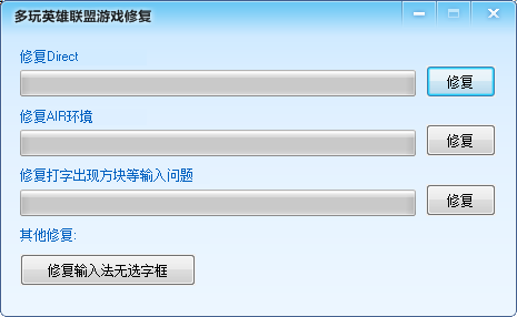 LOL是玩家很多的一款游戲,多玩開發(fā)的英雄聯(lián)盟修復(fù)工具LOLRepair為廣發(fā)玩家提供游戲免費修復(fù)服務(wù),如果你的游戲無法啟動,運行出錯,那么可以試試這款LOL游戲修復(fù)工具,可以解決包括修復(fù)Direct、修復(fù)AIR環(huán)境、修復(fù)打字出現(xiàn)方框等輸入問題、修復(fù)輸入法無選字框等問題。