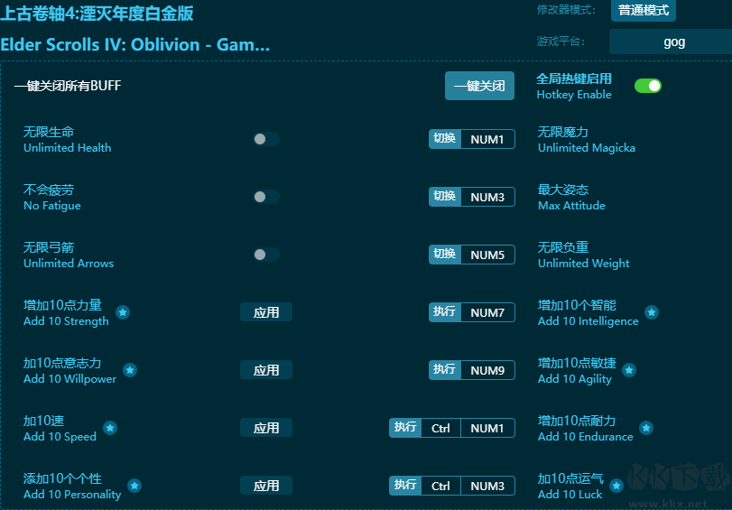 上古卷軸4:湮滅重制版十六項(xiàng)修改器鍵位功能
