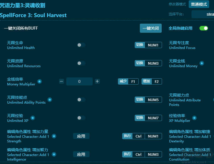 咒語力量3靈魂十五項收割修改器鍵位說明
