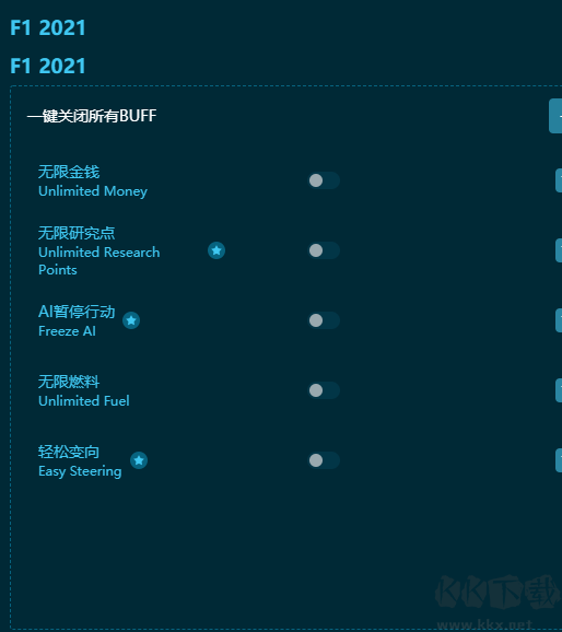F1 2021五項修改器說明