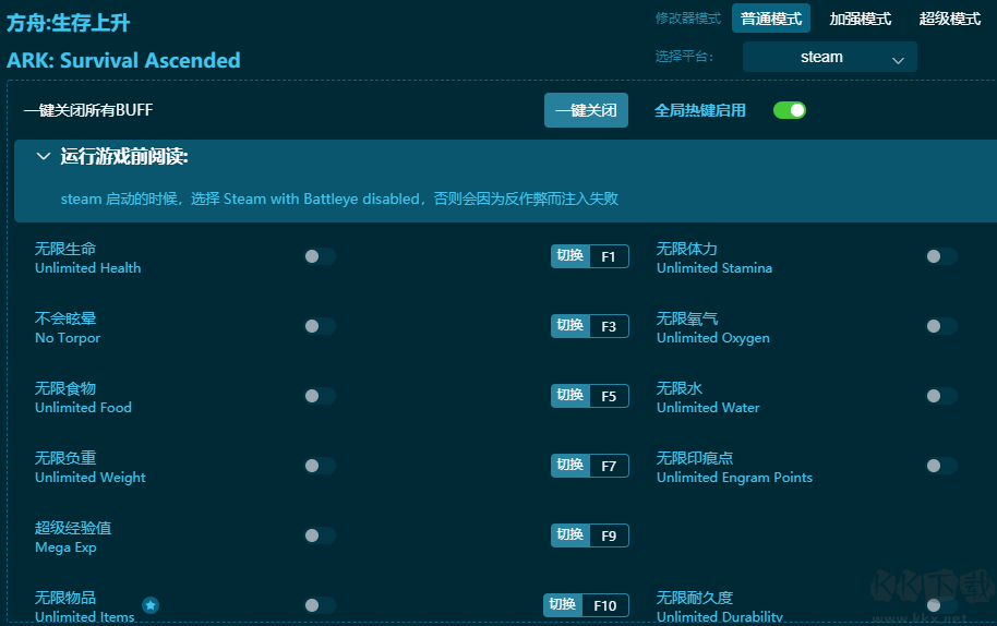 方舟生存飛升十七項(xiàng)修改器使用說(shuō)明