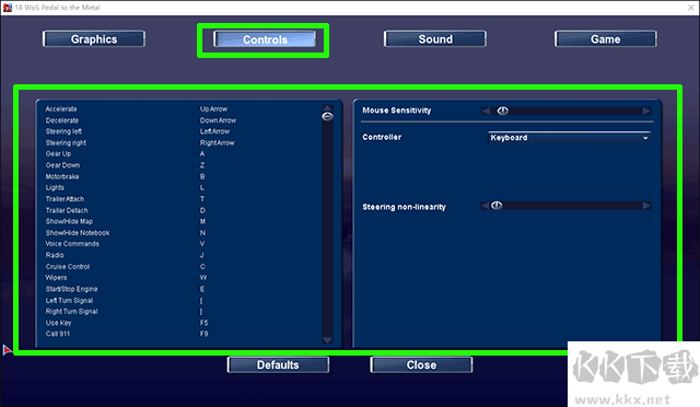 2、在設(shè)置界面的 controls 中,可瀏覽和更換操作按鍵;