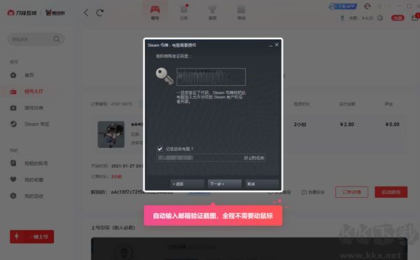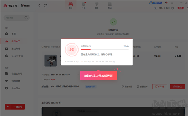 5、登錄游戲,在訂單詳情獲取解鎖碼,輸入后點(diǎn)擊登錄,20 秒內(nèi)自動上號。