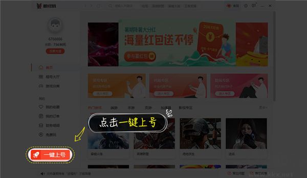 8、在登錄后的界面中,找到并點(diǎn)擊 “一鍵上號” 按鈕;