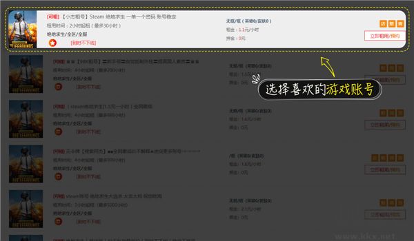 2、注冊成功后,進(jìn)入租號大廳,在眾多選項(xiàng)中找到并選擇絕地求生這款游戲;