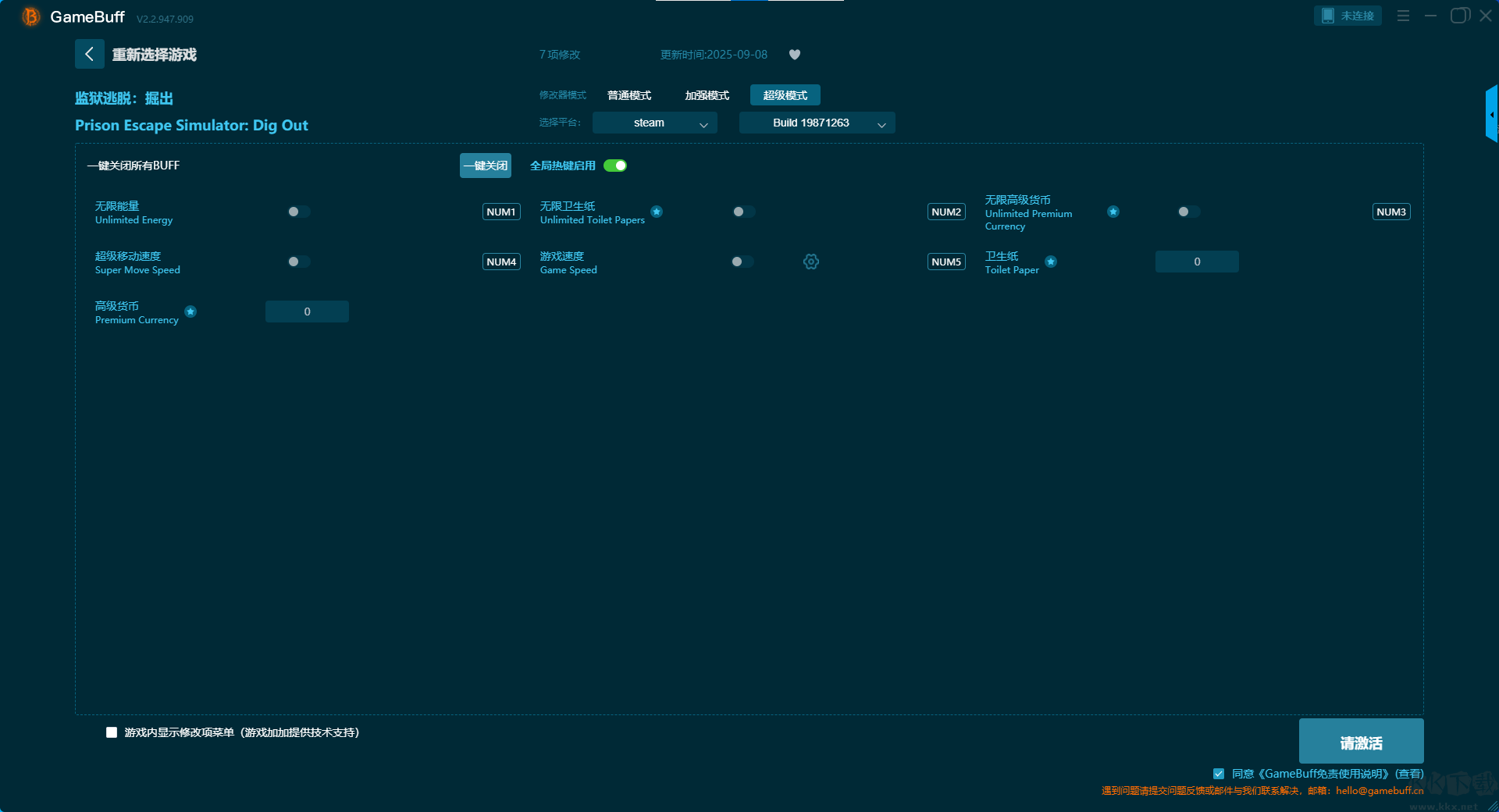 監(jiān)獄逃脫掘出八項修改器pc最終版是一款功能強大的游戲輔助工具。玩家可在游戲中一鍵開啟,無限能量、暫停時間、無限物品、解鎖指南針、凍結(jié)保護返回計時器、輕松清除污漬、衛(wèi)生紙貨幣、高級貨幣等8項普通模式的強大修改功能。喜歡的小伙伴快來KK下載站下載這款修改器體驗一下吧。