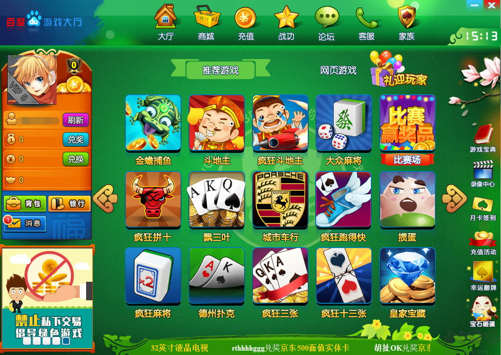 百度游戲大廳為廣大游戲愛好者提供了豐富的游戲,包括棋牌游戲、網(wǎng)頁游戲,其中還有棋牌比賽”、“休閑競技”、“角色扮演”、“模擬經(jīng)營”等多種游戲組合,讓大家在空閑時(shí)間有更好的休閑! 是不少用戶喜歡的一款游戲中心。