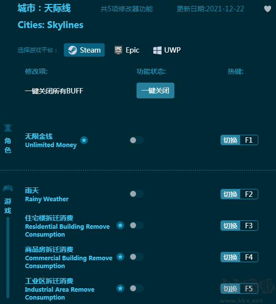 城市天際線修改器提供《城市天際線》游戲五項修改功能。支持一鍵開啟金錢,天氣,消費等游戲?qū)傩孕薷模瑤椭婕页蔀橐粋€好市長!感興趣的朋友不要錯過,KK下載站推薦大家下載體驗!