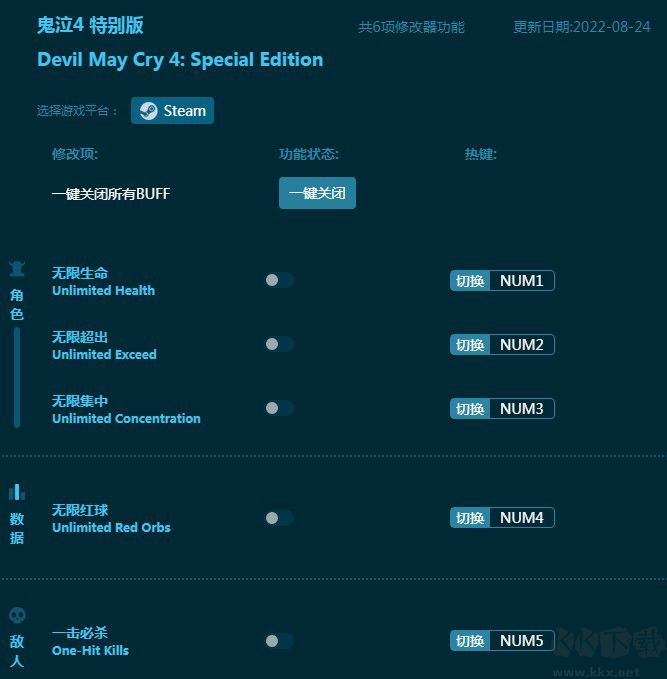 本站為您提供鬼泣4修改器下載,鬼泣4特別版是《鬼泣4》的增強(qiáng)版,相比起原版增加了多個(gè)可操縱角色。今天KK下載站給大家分享鬼泣4特別版專用修改器下載,修改器中提供了無限生命、無限集中、無限紅球、一擊必殺等六項(xiàng)修改功能,可以大大降低游戲難度,有需要的朋友趕緊下載體驗(yàn)吧!