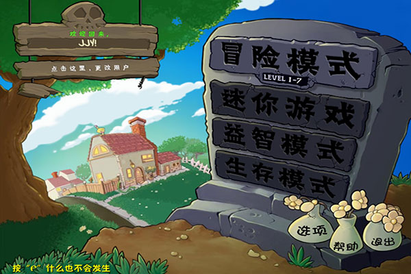 2、雙擊運(yùn)行"PlantsVsZombies.exe"程序,出現(xiàn)以下界面,點(diǎn)擊任意處繼續(xù)即可;
