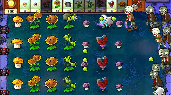 特點(diǎn):敵人強(qiáng)度差,突破能力差,陽(yáng)光生產(chǎn)效率高,場(chǎng)面開(kāi)闊。