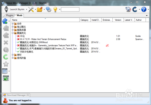 當(dāng)打上自己所有想要打上的mod時,就可以通過左上角的“launch skyrim”按鈕進(jìn)入游戲中。如果遇到游戲跳出,那就只能通過排序esp文件,或者卸載某些mod解決。本人就是w.a.t.e.r的mod會導(dǎo)致跳出,而無奈舍棄了它。