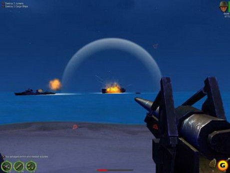 搶灘登陸戰(zhàn)2012玩家控制的是畫面近端的一個自由炮臺,目的是防止敵方軍隊登陸到海岸上。移動鼠標可以控制畫面上的準星,按下左鍵即為開火,玩家需要面對的,是地方的聯(lián)合作戰(zhàn)單位,包括空中的戰(zhàn)斗機,地面的戰(zhàn)車,以及蜂擁而至的步兵,在他們到達奔放炮臺之前,將其統(tǒng)統(tǒng)消滅即可。