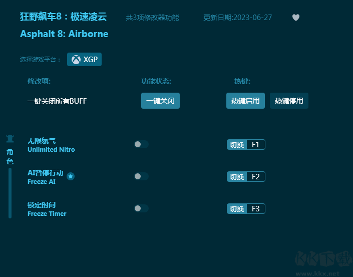 《狂野飆車8極速凌云》帶來狂野飆車第八部,駕駛你的豪華跑車在世界各地極限飆車。這款《狂野飆車8極速凌云修改器》為玩家?guī)砀娘j車體驗(yàn),支持無限氮?dú)?,鎖定時(shí)間,AI暫停行動(dòng)等功能,讓玩家的駕駛體驗(yàn)更爽快!感興趣的朋友不要錯(cuò)過,KK下載站推薦大家下載體驗(yàn)!