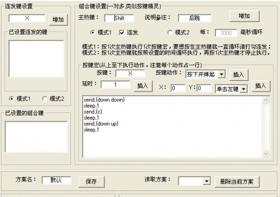 連發(fā)鍵沒什么說的,主要是組合鍵(宏)的功能,如果設置的技能分左右必須設置2個。