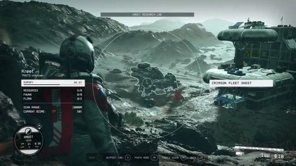 我們控制角色在星球表面和建筑物中游玩時,整體的感覺其實比較接近太空板輻射,UI結(jié)構(gòu)、射擊玩法等,都比較接近,這無可厚非,《輻射4》本身也是我非常喜歡的一款動作射擊RPG。