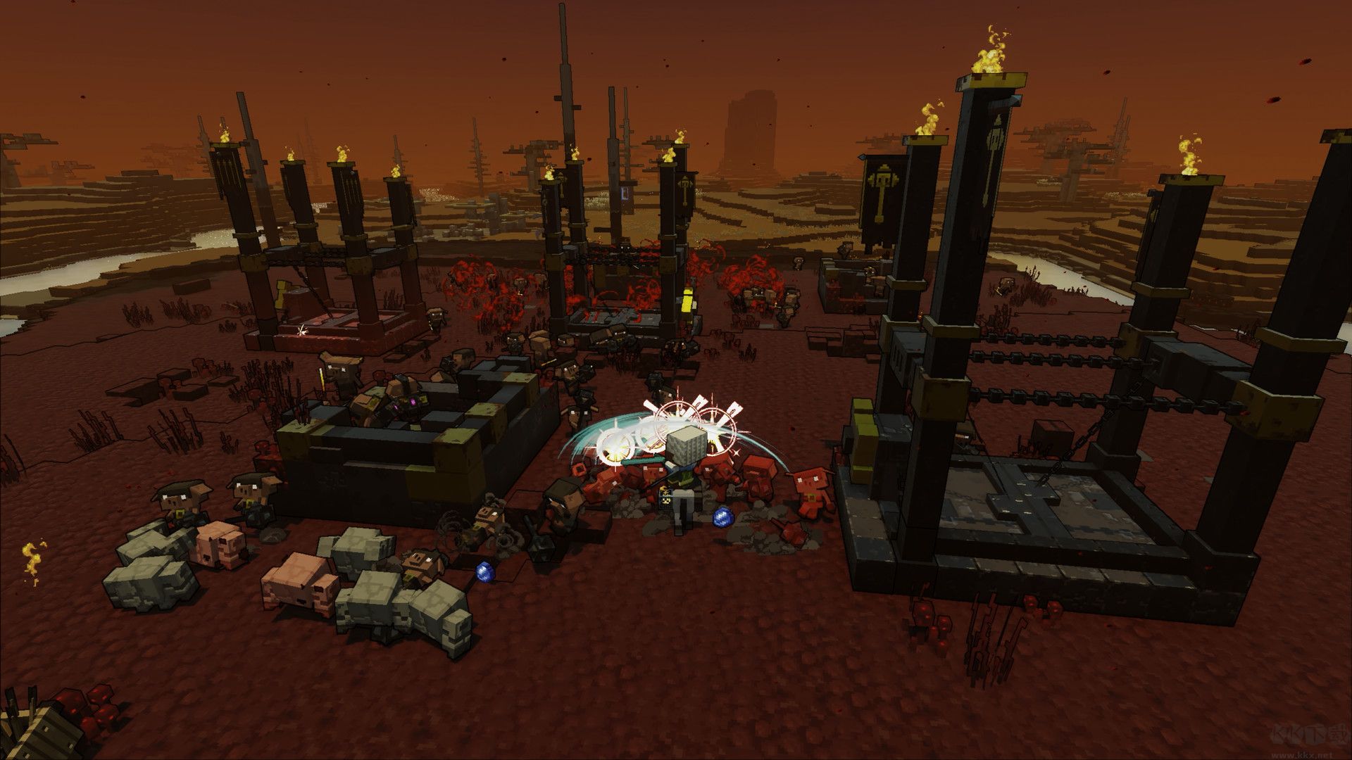 PVP目標(biāo)組隊(duì)摧毀對(duì)手的基地。游戲的目標(biāo)不是殺死對(duì)方隊(duì)伍