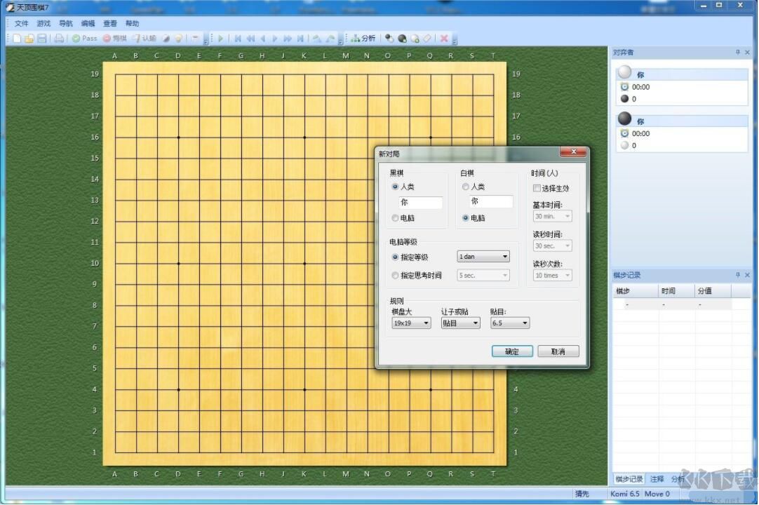 (4)支持多種棋盤大小(9路至19路),可設(shè)置引擎強(qiáng)度、讓子、貼目等,并可保存為自己的默認(rèn)設(shè)置。