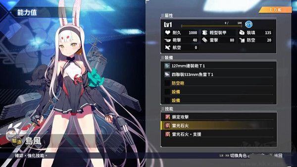 島風(fēng)的雷光石火一定時(shí)間提升攻擊和航速。
