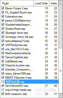 有些MOD會要求掛載esp或者esm文件,這時我們需要切換到第一張插件部分,在該文件前面打?qū)μ枴mm默認在安裝mod文件時,自動打?qū)μ?。而此時涉及到排序的問題,一旦mod比較多,可能發(fā)出沖突時,我們便要將其排序。在這里我并不推薦自己去排序,而是推薦一塊自動排序軟件 boss2.30。大家可以從網(wǎng)上下載使用。