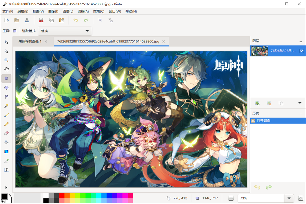 需要對(duì)圖片進(jìn)行一些較為復(fù)雜的編輯時(shí),pinta也是能夠勝任的,因?yàn)閺能浖﨨o1這篇文章上方的描述就可以看到,這個(gè)軟件對(duì)于圖層、圖片效果、圖片調(diào)整功能的支持是十分完善的。