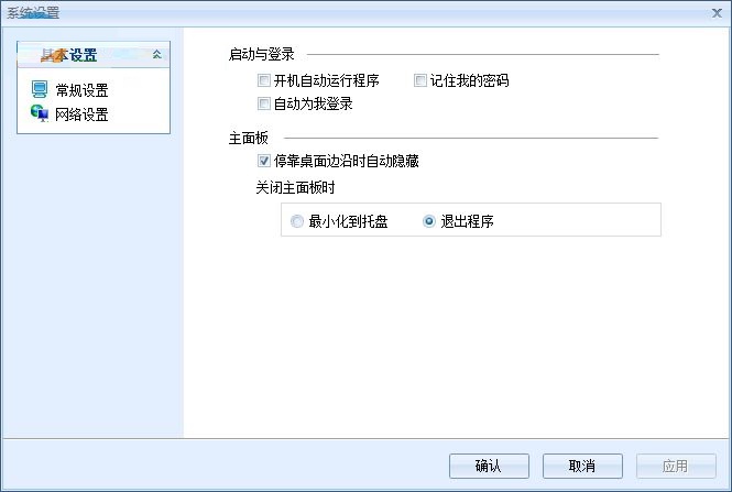 3、點擊網(wǎng)絡(luò)設(shè)置包括了啟動和登錄、主面板、常規(guī)設(shè)置、網(wǎng)絡(luò)設(shè)置等;