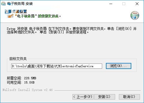 3、選擇安裝的位置,建議安裝在D盤,默認位置“C:\Program Files (x86)\FJElectronicTaxService”,點擊安裝;