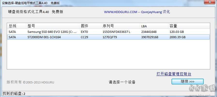 硬盤低級(jí)格式化工具是一款免費(fèi)的硬盤低格工具,所謂低級(jí)格式化就是對(duì)硬盤進(jìn)行徹底的格式化,相當(dāng)于恢復(fù)出廠時(shí)的狀態(tài),劃分出的柱面和磁道,再將磁道劃分為若干個(gè)扇區(qū),每個(gè)扇區(qū)又劃分出標(biāo)識(shí)部分ID、間隔區(qū)GAP和數(shù)據(jù)區(qū)DATA等,而高級(jí)格式化可以選定格式化區(qū)域,所以用戶在使用這款工具之前請(qǐng)確認(rèn)備份好重要數(shù)據(jù)。