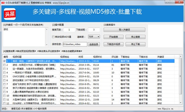 今日頭條視頻下載器修復(fù)版下載(批量視頻下載工具)就是一款非常不錯(cuò)的視頻批量下載工具。它在原有版本的基礎(chǔ)上進(jìn)行了算法修復(fù),能夠快速獲取視頻,并且支持批量下載,非常給力哦!