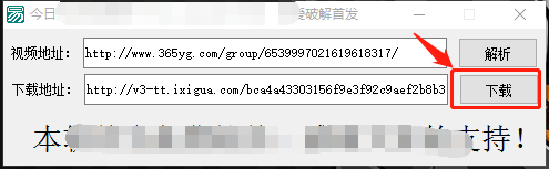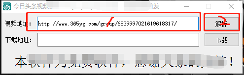 將從瀏覽器復(fù)制的鏈接粘貼到【今日頭條下載工具】軟件的【視頻地址】?jī)?nèi),點(diǎn)擊【解析】即可