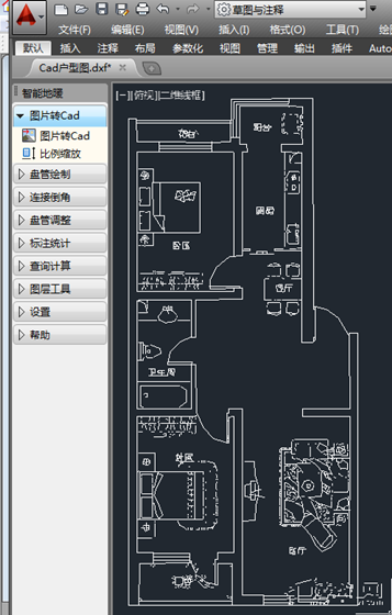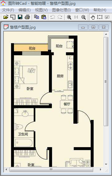 在轉換的戶型圖中繪制盤管或其他設計工作,還需要調(diào)整下比例。因為原始圖片是沒有單位信息的,從圖片轉換到Cad的圖形,一般還要轉換為毫米單位下的尺寸。