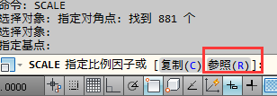 輸入縮放倍數(shù)時,也可以用“R”關鍵字,采用參照方式,先在圖形中指定一段長度,再輸入實際長度即可。