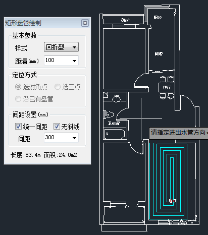 圖形調(diào)整比例后,刪除不需要的裝飾,即可開始繪制地熱盤管,如圖: