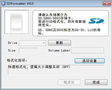 SDFormatter漢化版是一款內(nèi)存卡修復(fù)工具,SD卡修復(fù)工具,它是由松下公司推出的sd卡格式化工具,能夠修復(fù)手機(jī)內(nèi)存卡(SD卡,TF卡,minisd,TK卡,SDHC卡/SDXC卡等),讀不出來(lái),又無(wú)法格式化的問題。同時(shí)新卡使用該工具格式化一下也有加快速度的效果,非常知名的一款工具。