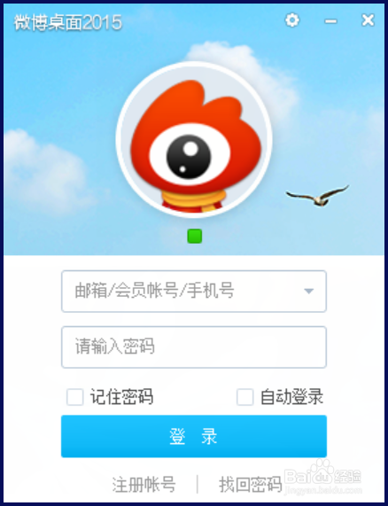 1、安裝成功后打開(kāi)微博桌面軟件,沒(méi)有賬號(hào)的朋友可以選擇注冊(cè)賬號(hào)